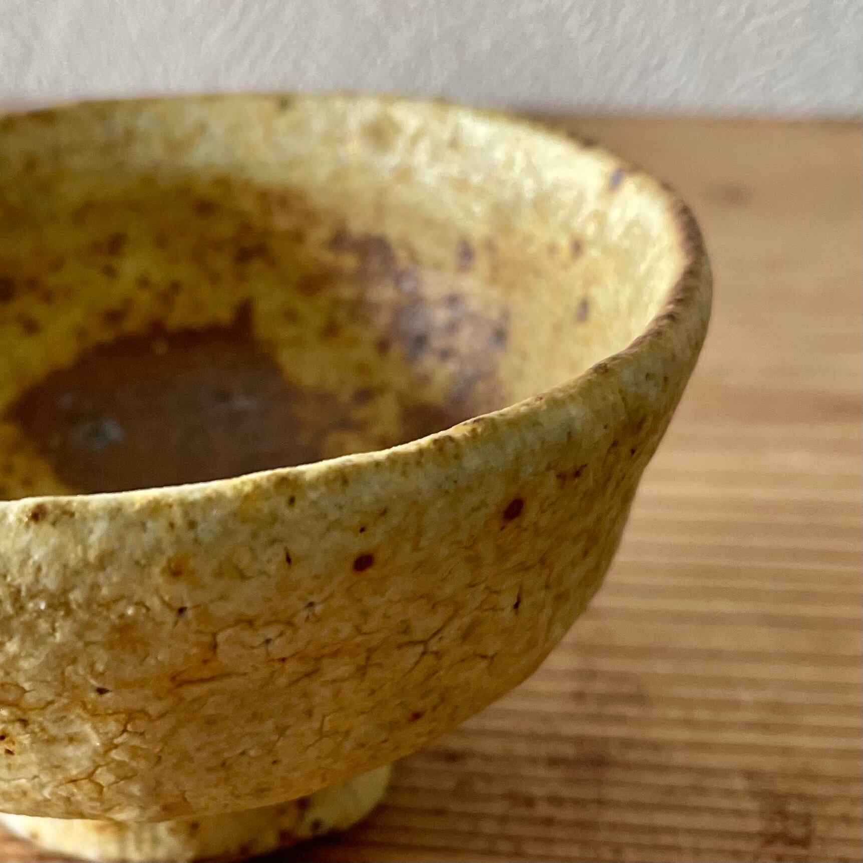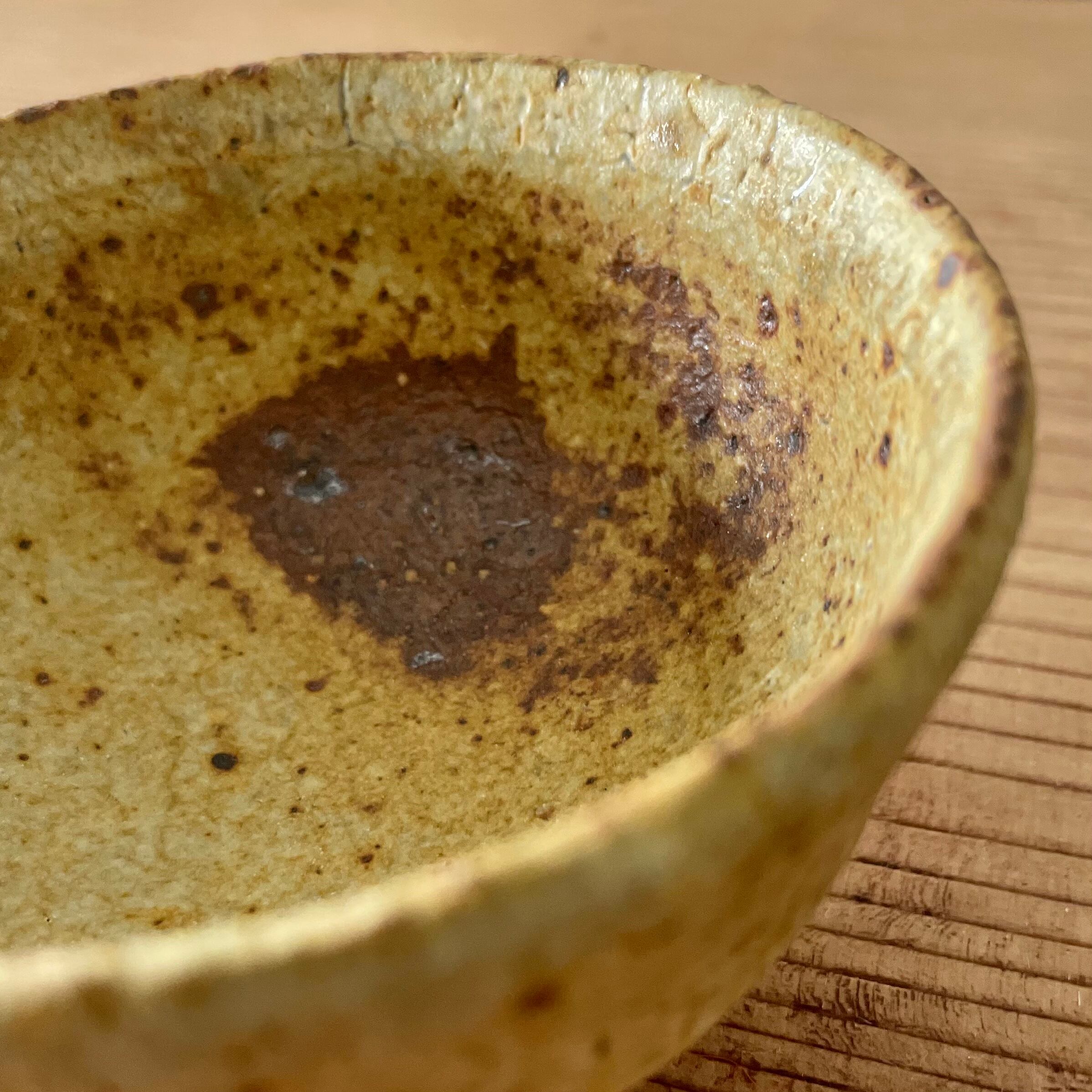 少し大きめなので、小鉢としても使いやすいです。中側の焼きむらが個性的です。少しだけ傾いてますが、それもまた味です。