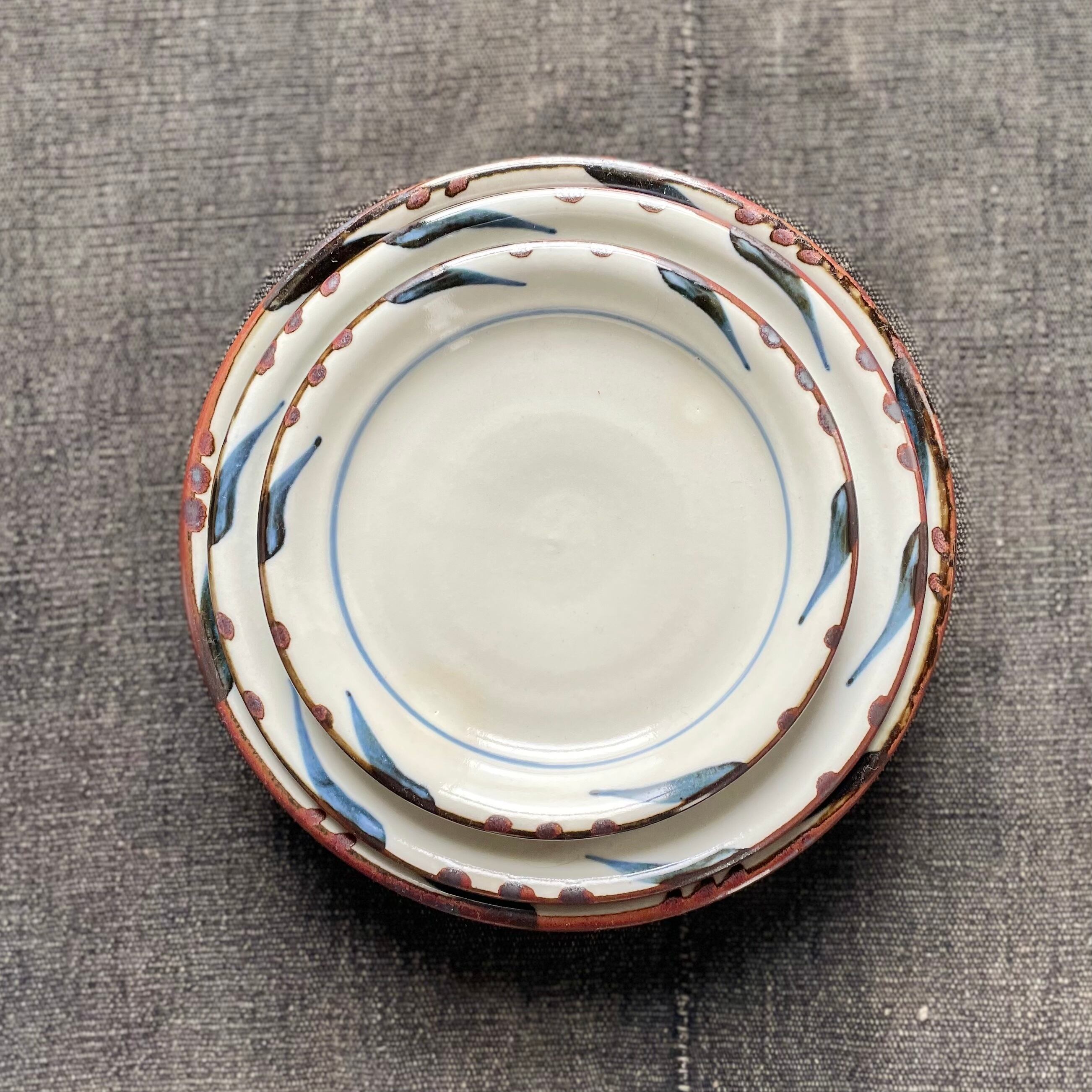 袖師窯 草絵6寸皿ブルー(中)