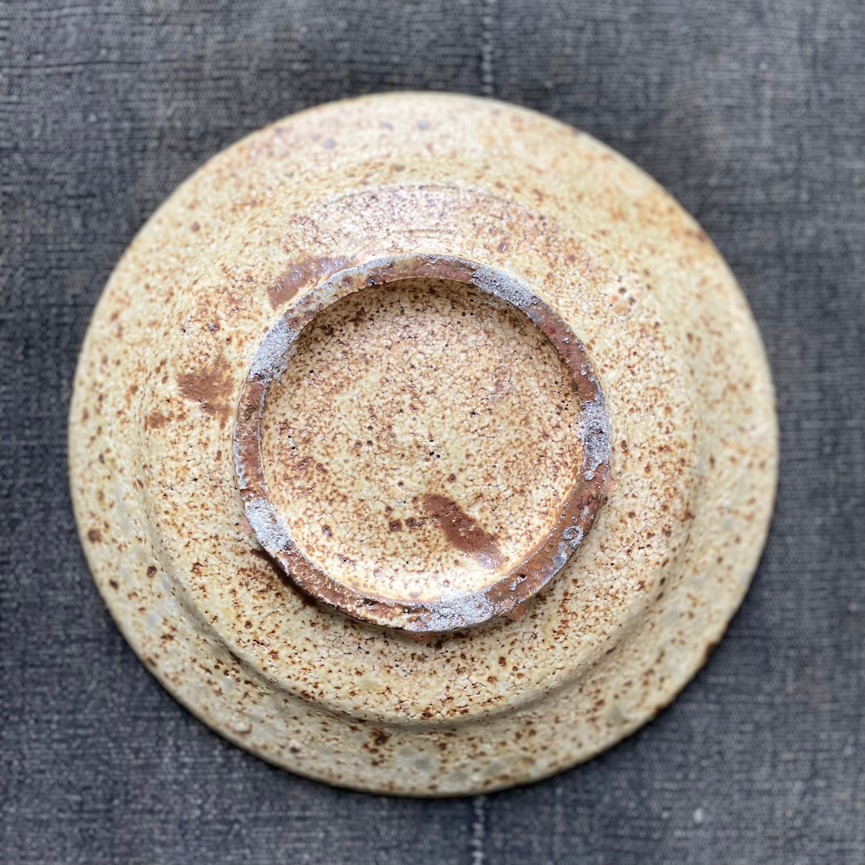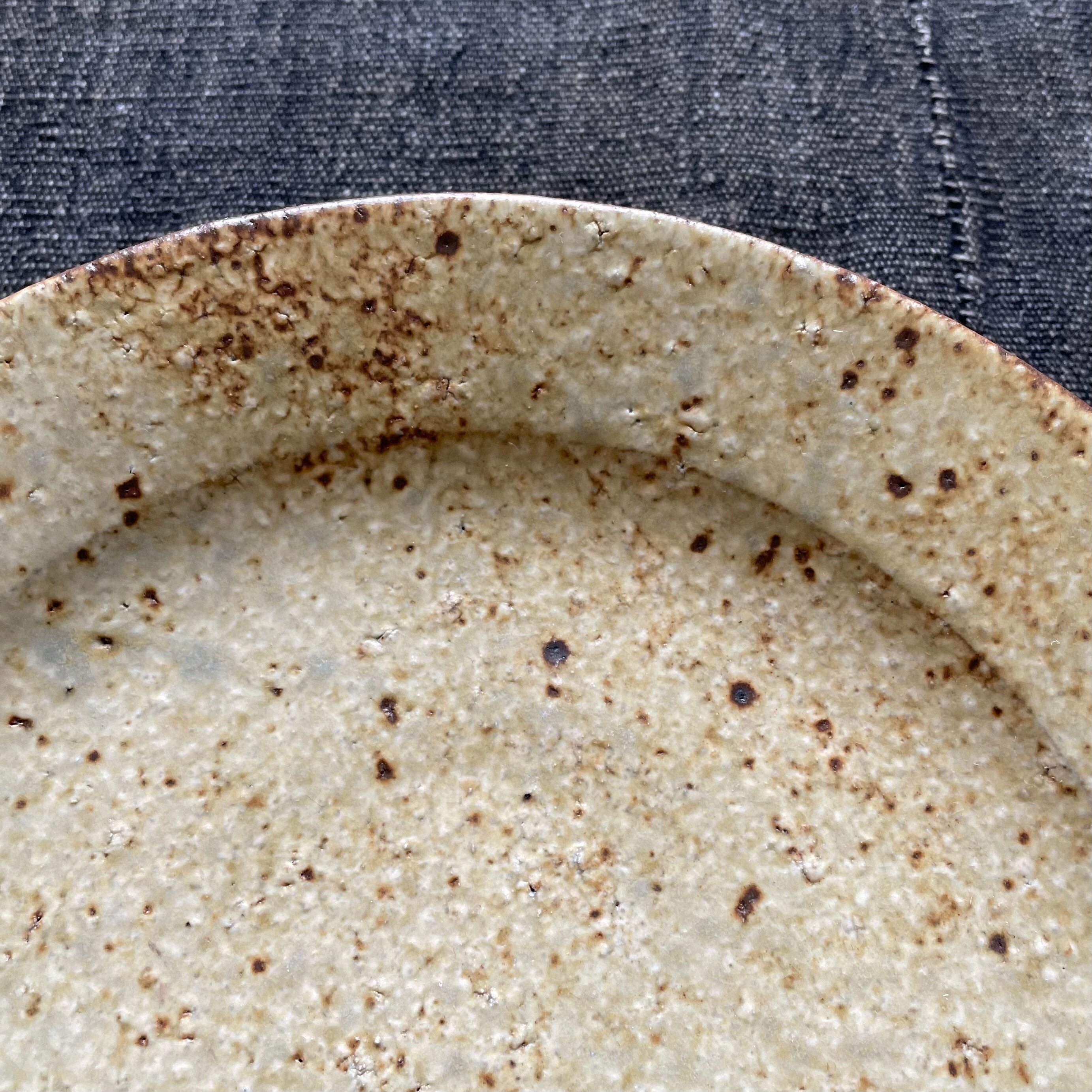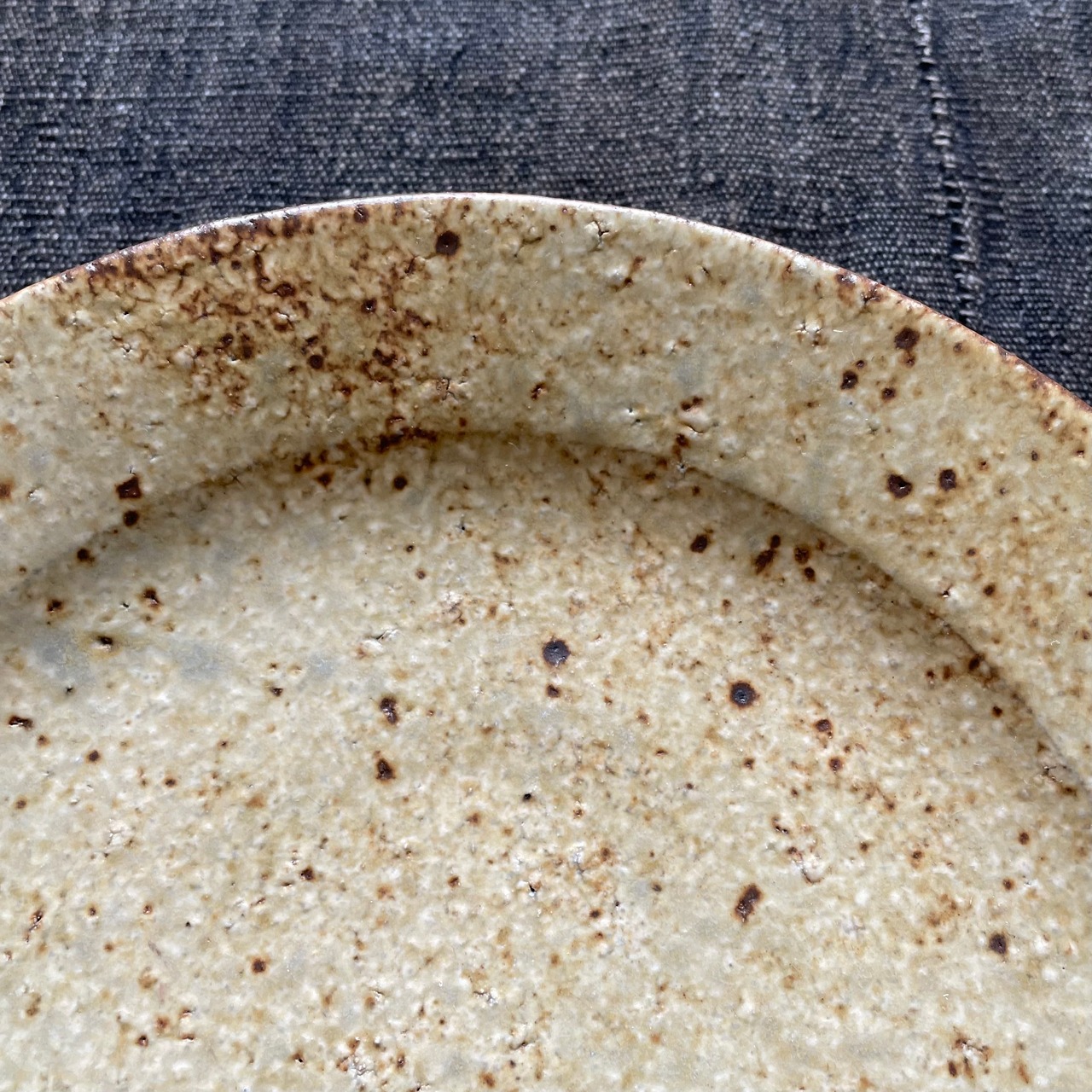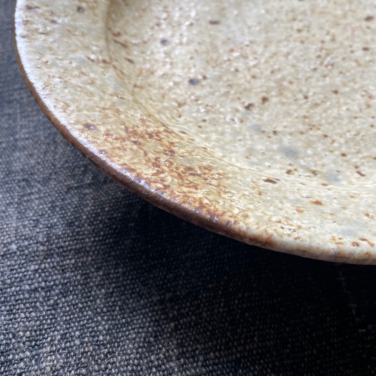 リムがしっかり効いていて、藁の釉薬の色むらも表情がしっかりとあり、どんな食べ物も受けとめてくれます。ワンプレートで色々のせても!