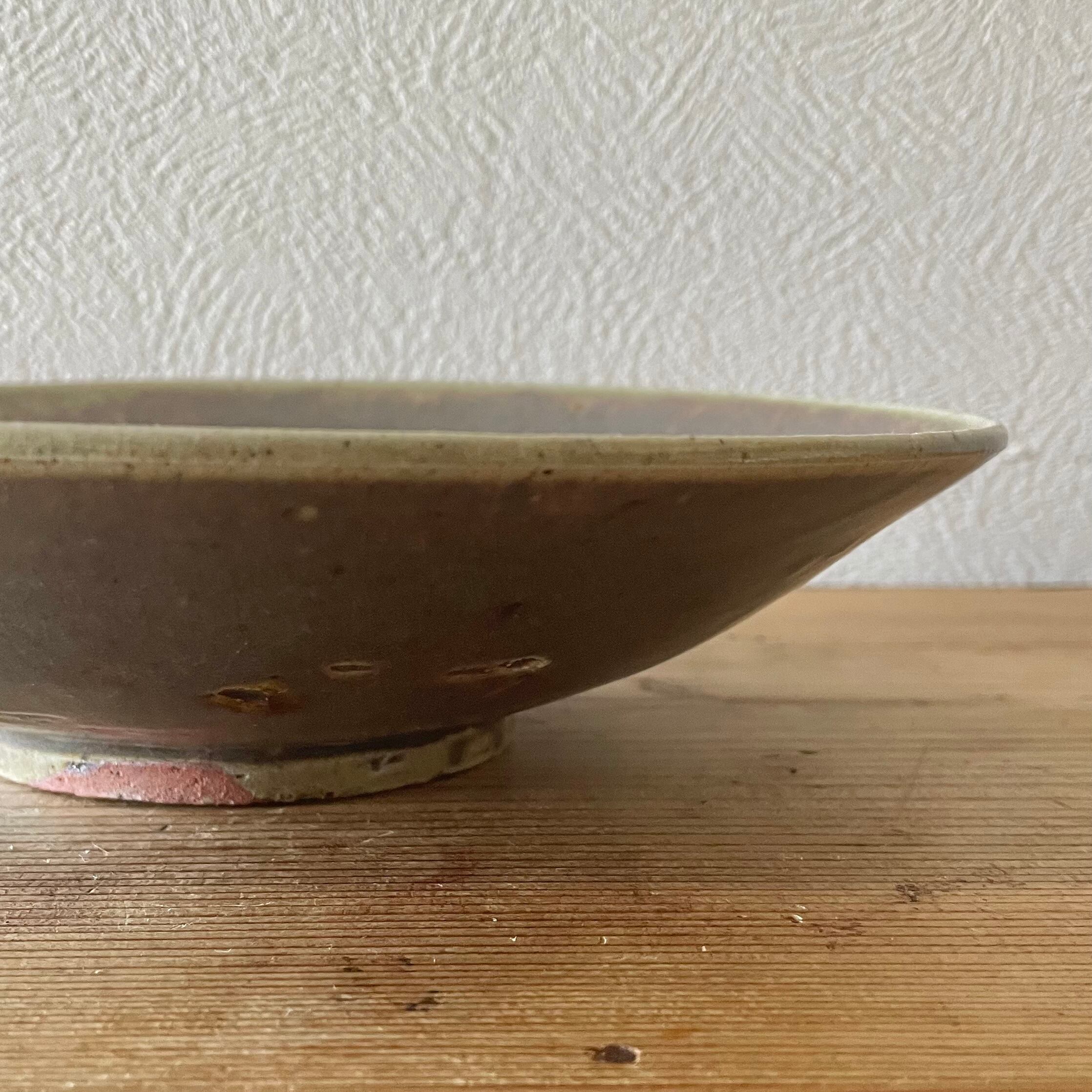 偶発的にできた色むらが、どんな食材や食べ物を受け止めてくれます。少し立ち上がっているので、平皿よりも用途が多そうです。