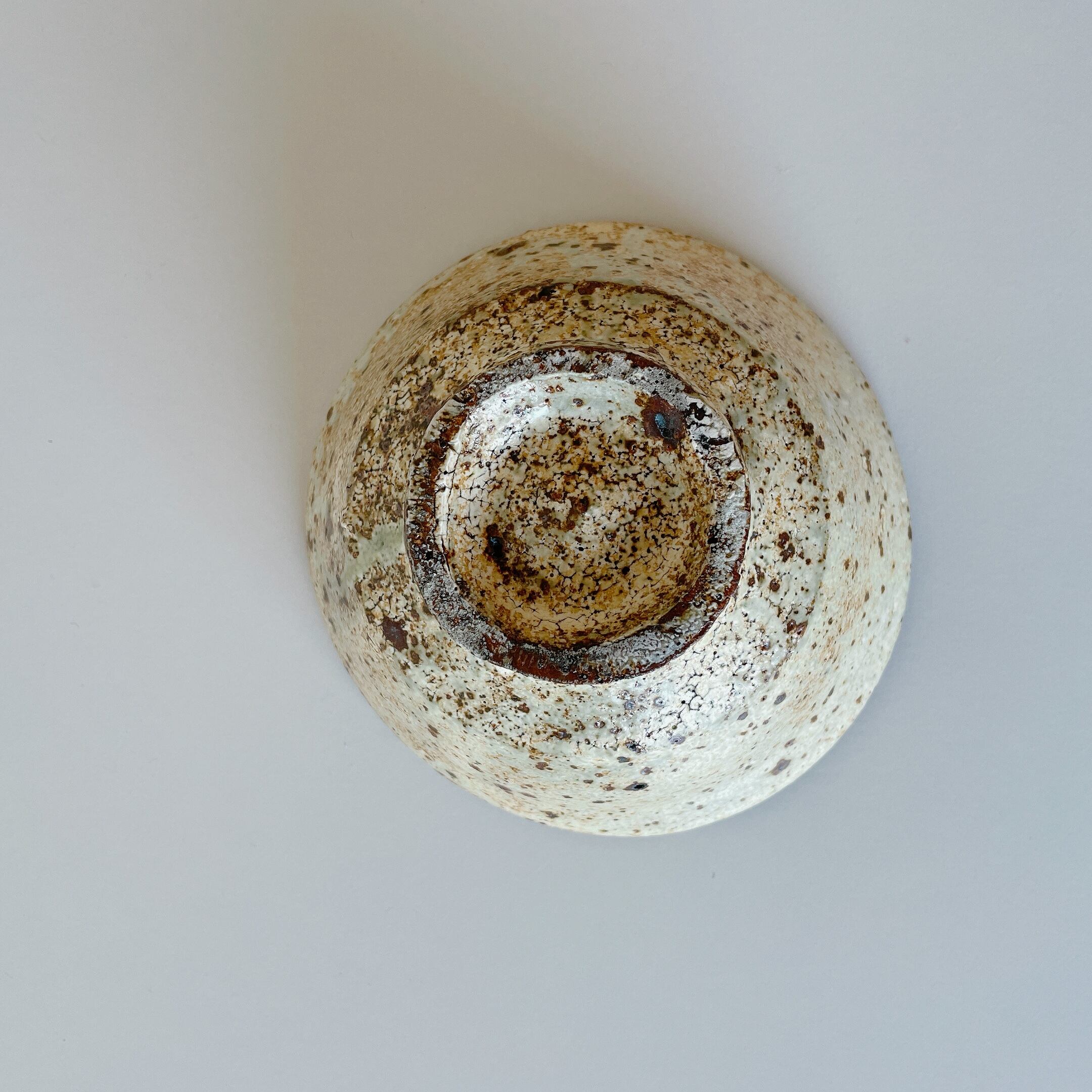 気の利いた小さめのどんぶり。グリーンの釉薬と土の特性から出来た斑点がいろんな食べものを受け止めてくれます。上部が広がっているので、盛り映えします。