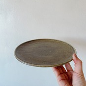 工房の裏山から採った土と山口の土から作られた、味わい深い一皿です。釉薬のムラも美しく、どの食事も相性が良いです。